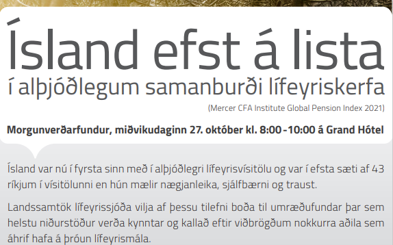 Landssamtök lífeyrissjóða boða til umræðufundar þann 27. október til að fara yfir niðurstöður Mercer lífeyrisvísitölu